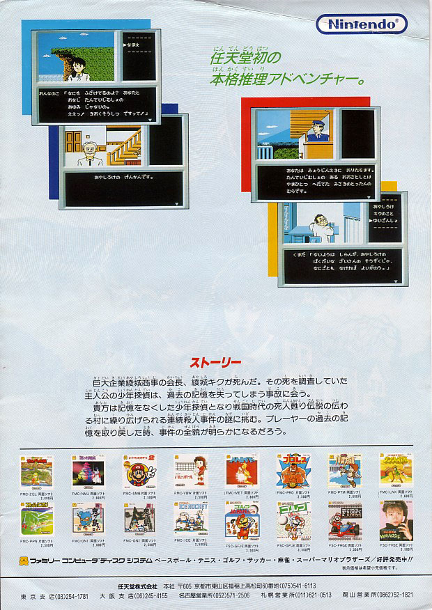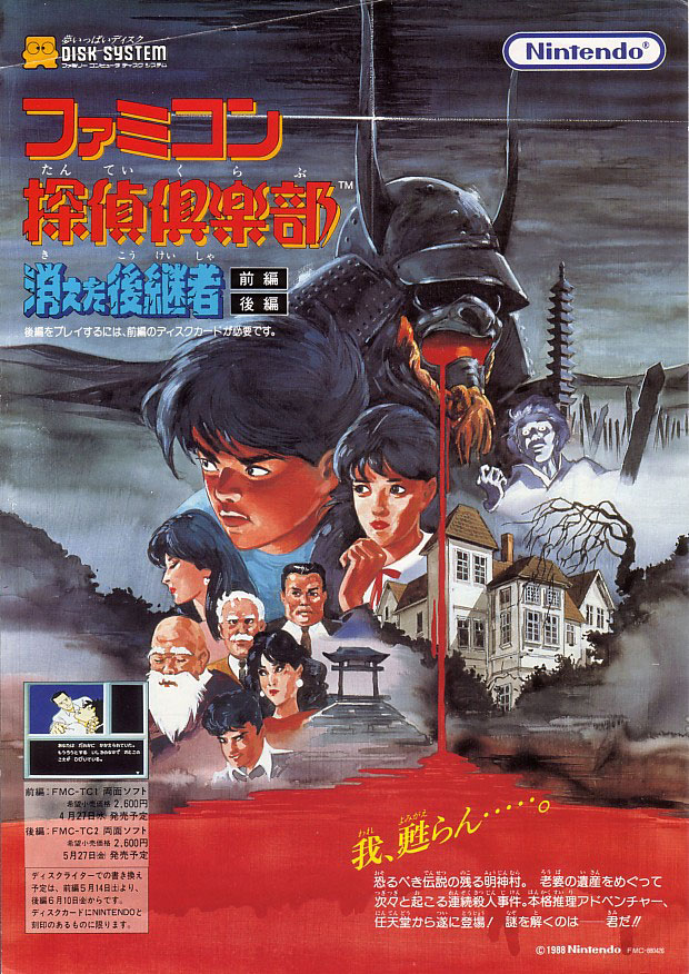 ファミコン探偵倶楽部第2弾で学園ホラーミステリーアドベンチャー。前作の3年前を舞台に、丑美津高校に出る幽霊の真相を突き止めるというストーリーで、ゲームながら殺害シーンや白骨死体のシーンなど、当時のファミコンの中では、かなり突っ込んだ描写として話題をさらいました。
