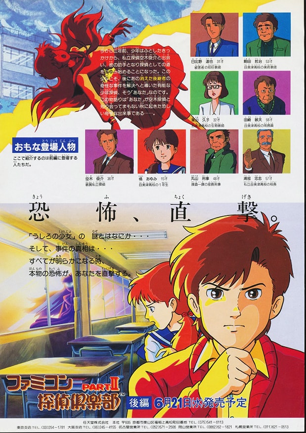 ファミコン探偵倶楽部第2弾学園ホラーミステリーアドベンチャー。前作の3年前、一つの事件をきっかけに橘あゆみと出会い、丑美津高校に出ると噂される「うしろに立つ少女」の真相を突き止めることになった探偵があなたです。