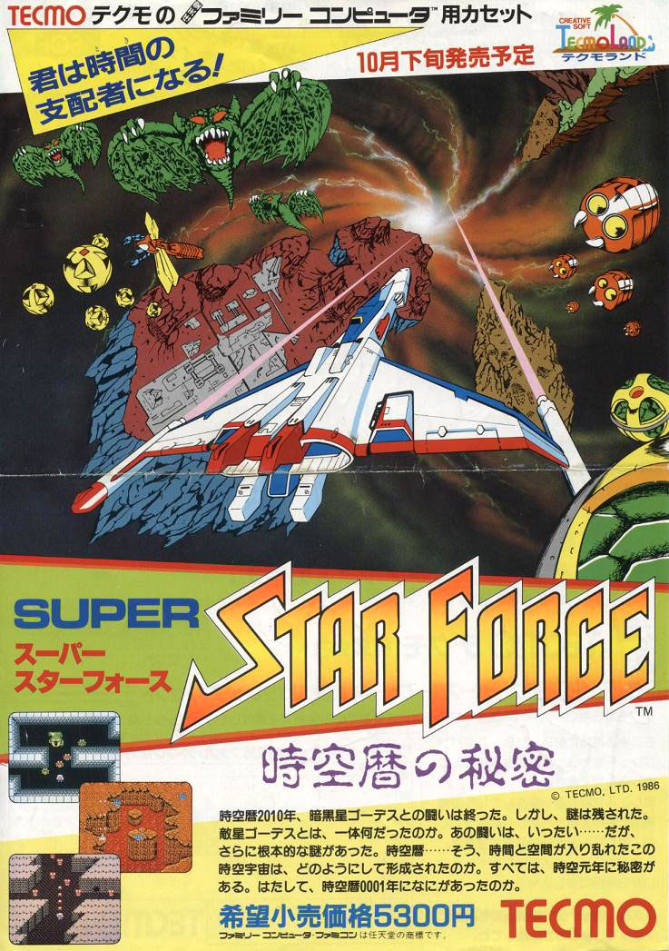 前作「スターフォース」(発売元:ハドソン)は縦スクロールのシューティングゲームで大ヒット。ゼビウスに次ぐ人気を博しました。第2弾ではオリジナル版権を持つテクモ(旧:テーカン)より、アクションRPG要素を盛り込んだ内容の濃い作品となって発売されました。